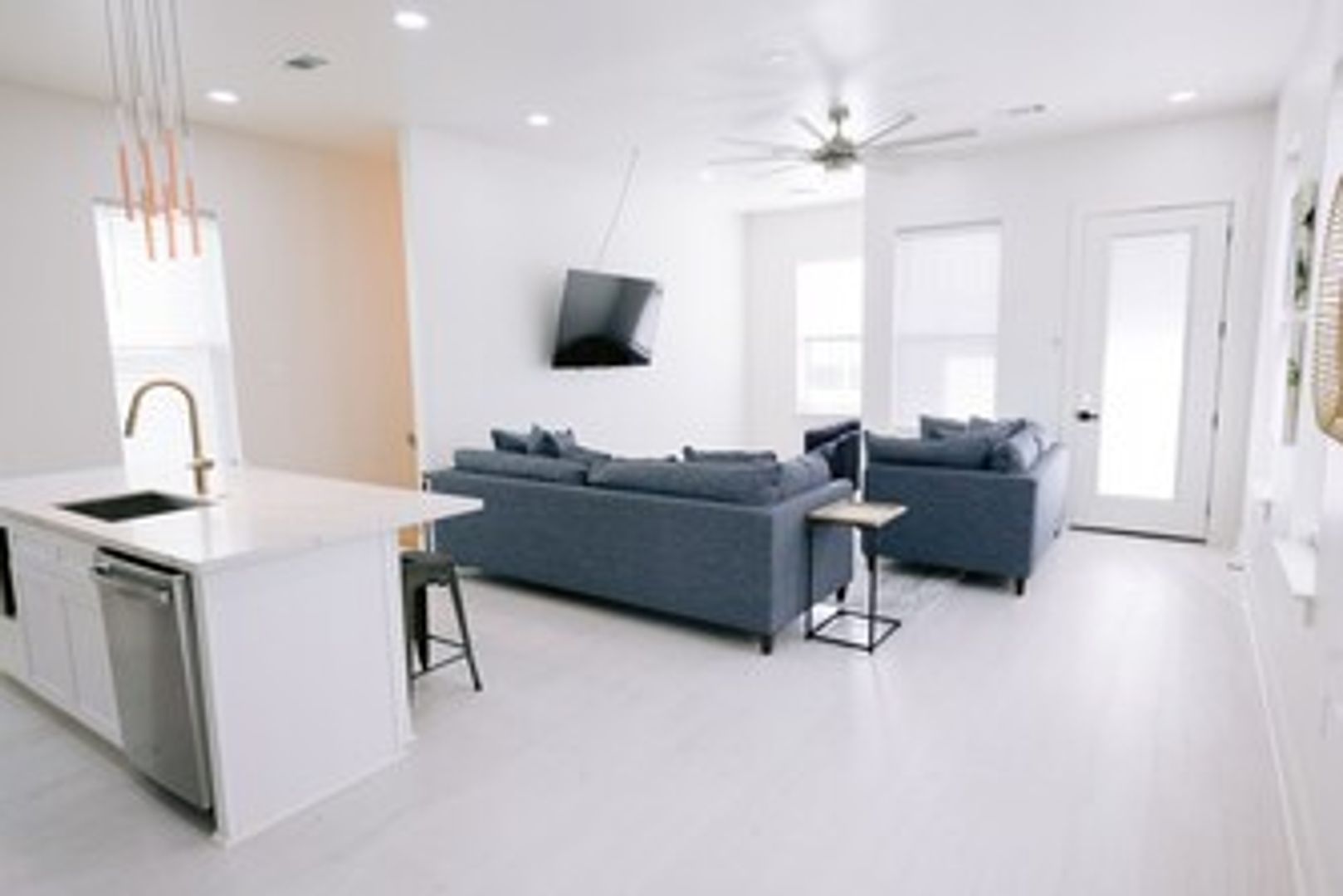 This unit boasts ALL NEW furnishings including King and Queen sized beds with spacious seating in its contemporary styled living areas. Stainless appliances and magnificent quartz counters adorn the large kitchen island and bathroom counters with other special touches that provide all the comforts of home. An Open Floor Plan and 10' ceilings highlight this space with beautiful recessed lighting throughout. The Master suite features a glass enclosed walk-in shower and double vanity sink. On site washer and dryer are provided along with wonderful outdoor spaces with ample outdoor seating, gazebo and more. We specialize in extended stays and offer discounted pricing.